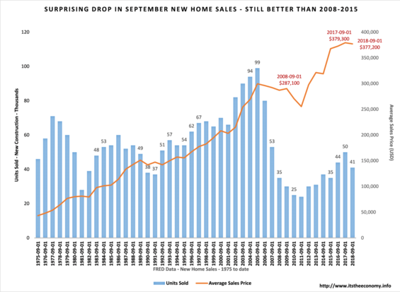 New Home Sales Recorded Only 41,000 Units Sold. This is well below what was anticipated. The important thing to note here is that this is still better than what we saw sold during the month of September from 2008 through 2015. It is also better than what we saw sold during 1990 and 1991. This is going to be important when we look at the rest of the data.