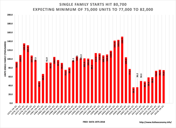 Expectations are for the month to month data to change by either plus or minus 4%. Same month growth is expected to grow by 3% to 8%. This means that we should see a minimum of 77,000 starts and the potential for 84,000 starts. We should see well above 75,000 starts and could anticipate 80,0000 single family starts.