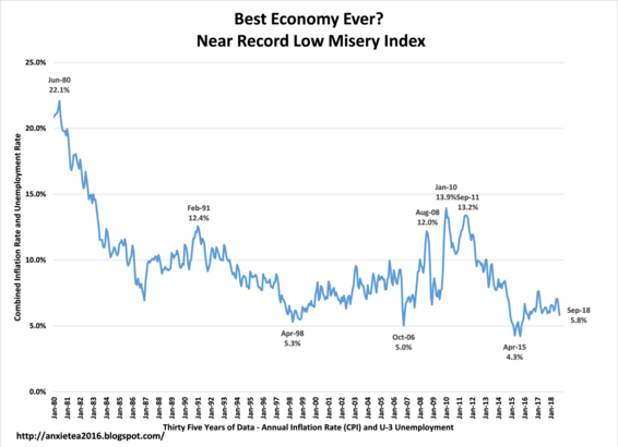 There had been discussions of the Misery Index during 2010 - the addition of the inflation rate to the unemployment rate. This is terrible economic math. It is like comparing merging a tomato and an apple because they are both red. The Misery index was dropping during 2015 because we had CPI-U deflation. This column argues that the unemployment rate, the U-7 unemployment rate, is much higher than the U-3 unemployment rate used to calculate the Misery index, and that this effective unemployment rate, when participation is factored into the equation, is at least 7% and the Misery index is bumping up against 10%.