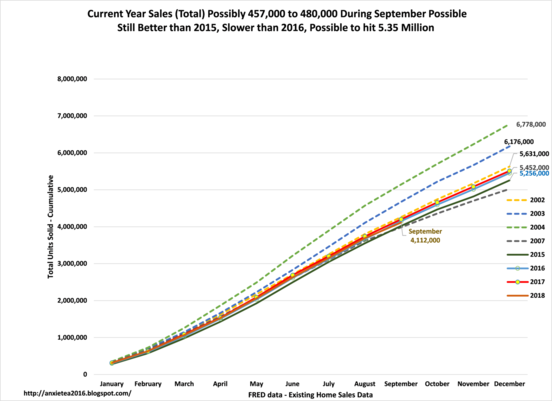 The Current Year Sales are slightly lower than 2017 and 2016 and slightly better than 2015. This year we have 4.112 million units sold. We had 4.02M during September 2015 and 4.152M during September 2016. We are 60,000 units behind 2106 so we could see 5.35 million units sold this year. We could also see a number more like 5.26 million units sold.