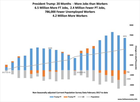 The data was good this month. Wages were up, non-seasonally adjusted. Workers and jobs were up, especially in the part-time jobs category. Unemployment is near the historic lows of October 1999 and October 2000. Remember that we have to factor in the number of full-time jobs and part-time jobs to calculate the unemployment rate. This was a strong report that got buried by the Supreme Court conformation process. We are not at full-employment because we are nowhere near "full-participation." We do not have more job openings than unemployed workers because the unemployment level does not include the "missing participants." We might as well compare the JOLTS job openings with the weekly continuing claims data as compare them to the CPS unemployed worker level. Three different data sets that measure three different "things."