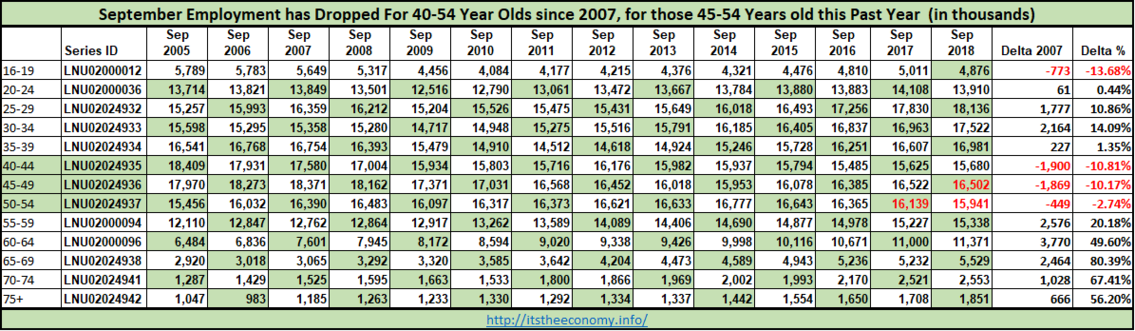Where are the 40-54 year olds? This group of workers have been depressed since 2009. The 40-44 year olds saw a decline during 2006 and declined through 2015.